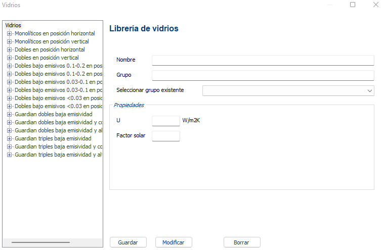 Una vez descargados los vidiros, se podrán ver en el apartado "Librerías > Vidrios":