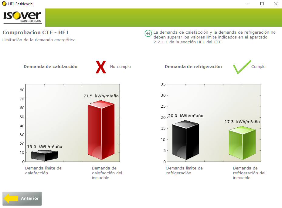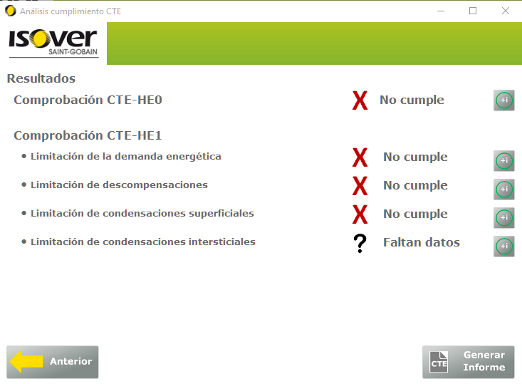 El programa, genera un completo informe con todos los cálculos realizados y el resultado de la comparación con los requisitos establecidos en el CTE. |