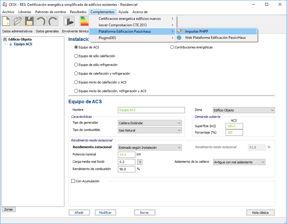Una vez instalado, abra el CE3X y le aparecerá la opción "Plataforma Edificación Passivhaus" en el menú de Complementos.