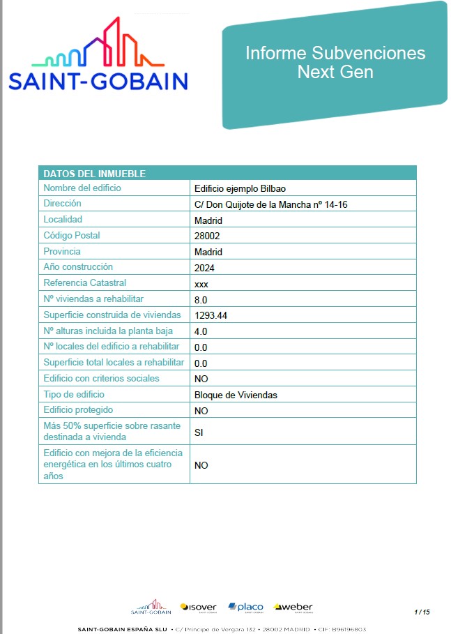 El complemento, actualmente, da información sobre la cuantía de la subvención bajo los programas PREE 5000 (en el caso de que el edificio se encuentre en uno de los municipios que integran los "Municipios de reto demográfico") y los programas 1 (barrio), 3 (edificio), 4 (vivienda) y 5 (libro del edificio existente) de las ayudas "Next Generation"